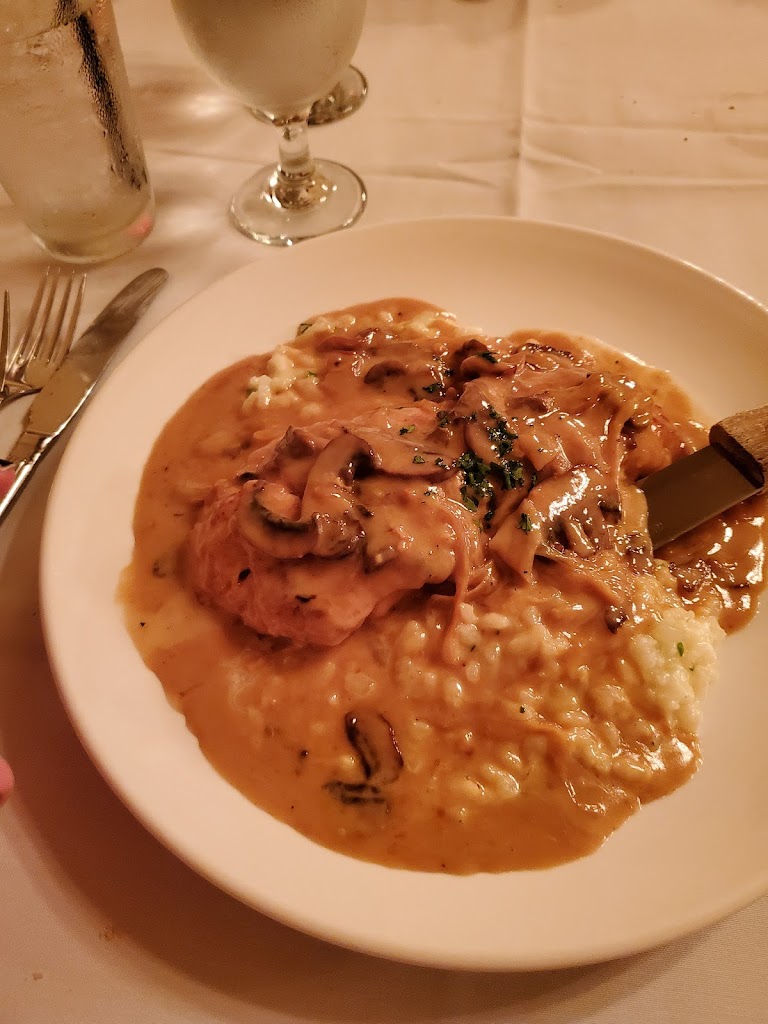 The food was delicious, I recommend the chicken marsala and risotto it was awesome and the mixed berry. Also, the fanciest Ceasar salad I've ever had, loved it.