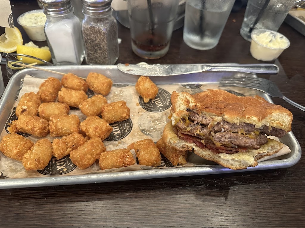 Service was outstanding. The shake was great and I didn't mind that it was $14 for it. The burger however tasted like it had been sitting in a hotel pan steaming until they plated it. Tater tots were also oily tasting. Food came out fast, but that's because it tasted like it was precooked. 5 stars for the shake, 1 star for the food.