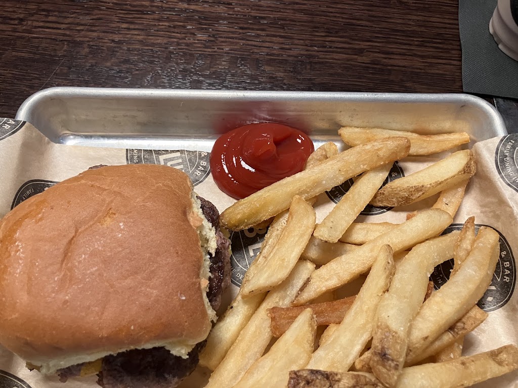 Burgers and fries. Just go to Culver's or burger King or McDonald's. Nothing special. Burgers and fries.