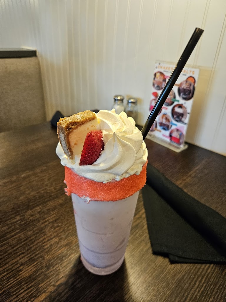 Food was great! Service was awesome!! Definitely come here for a shake, I recommend the strawberry cheesecake!!