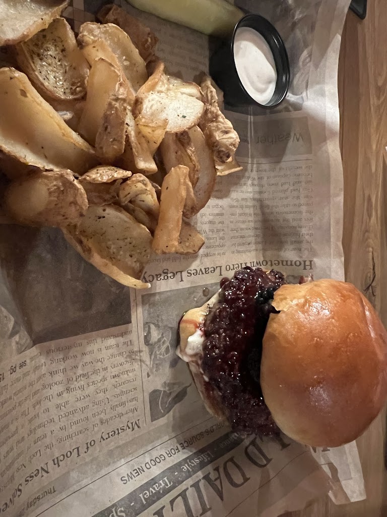 Three of us had dinner here tonight ..I had the Bacon Blackberry Cheesecake Burger..it was amazing!!! The other entrees were the Apricot Habanero Burger and Loaded Mac and Cheese with Beef Brisket..the fries were perfectly seasoned and the coleslaw was very good. Do not pass trying that Bacon Blackberry Cheesecake Burger...you will love it!!!w. We're looking forward to trying more entrees on their menu!!!