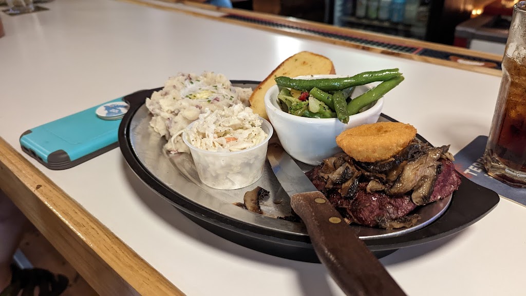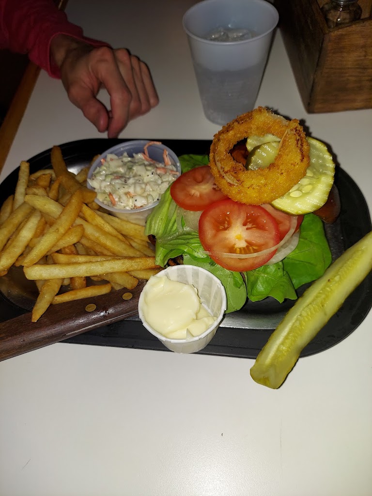 Brisket sandwich and fries good. Steak sandwich good. Ordered medium rare was too done. Good taste tho. Rings good. Very clean nice bar. Cami is a very friendly bartender.