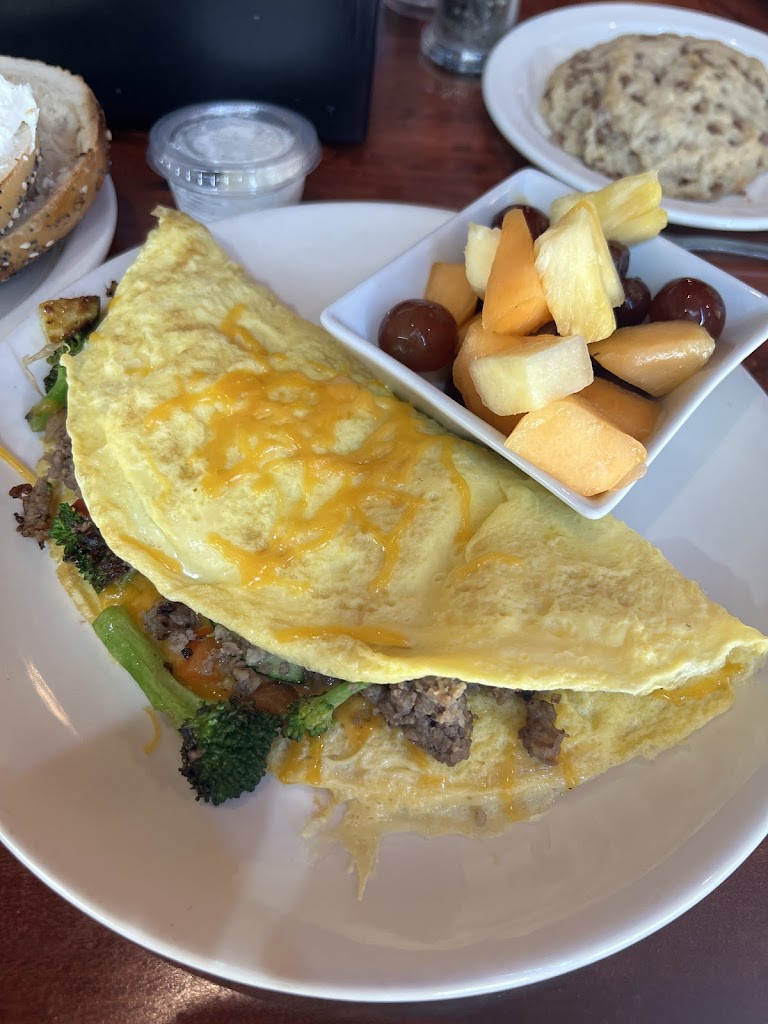 The potential is there but the food was average at best. Omelette was pretty horrible cookies are pretty junk honestly too. Their soy chai latte was great though. Bagels were fine nothing special. I ordered a sandwich once and they put the wrong mustard on and didn't offer to make me another sandwich which was pretty lame too. The place next store is higher quality.