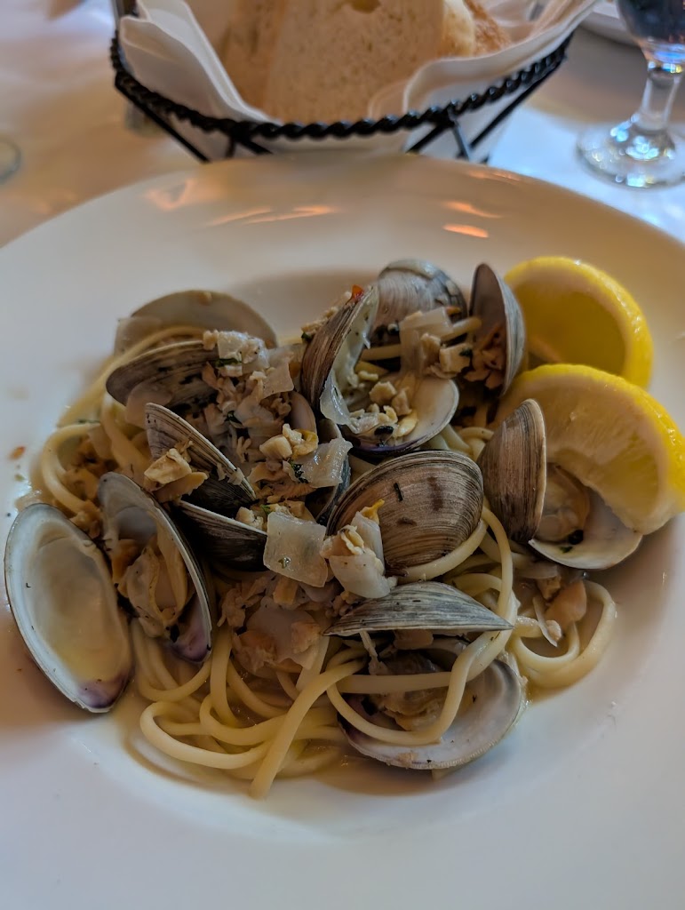 The food was very good, but my linguini and clam sauce was overly salty. The Cesar Salad and fried eggplant were excellent. Service was awesome. The atmosphere would have been delightful, but the room was *packed.* There was a Brewers game that night and they have a shuttle, so there were lots of people headed to the game after their dinners.
