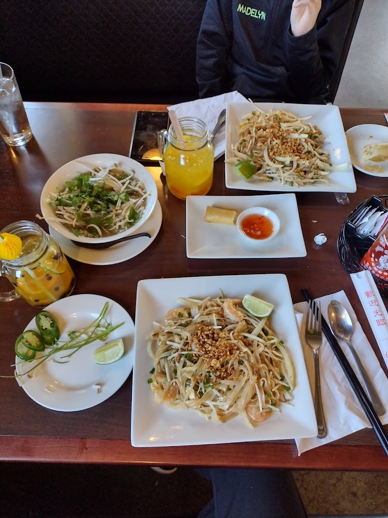 I took my daughter here today and we absolutely loved it! Our waitress was fabulous and the food and drinks were fantastic!! Inside, it was super cute and clean. We ordered egg rolls for an appetizer, shrimp pad thai, shrimp pad thai, a kids sized beef pho, passion fruit drink and orange drink and shared a creme brulee for dessert (we were super hungry 😆). Phenomenal! We don't live in the area, but will be back!