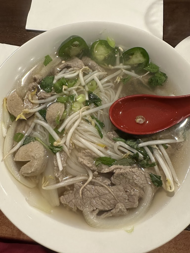 Here’s my honest review. Overall, the food was enjoyable. I ordered pho for both my wife and myself. She felt the broth leaned a bit on the salty side, which seems consistent with other reviews, though I personally did not find it to be an issue. The chicken spring rolls were the main disappointment. For the price, the portion of chicken was noticeably small, even though the peanut sauce was a reasonable size. Since we ordered takeout, I cannot comment much on the service beyond it being standard. The atmosphere was excellent, with impressive displays, artwork, and a very clean and well-maintained space. With more chicken in the spring rolls, I would have little else to critique.