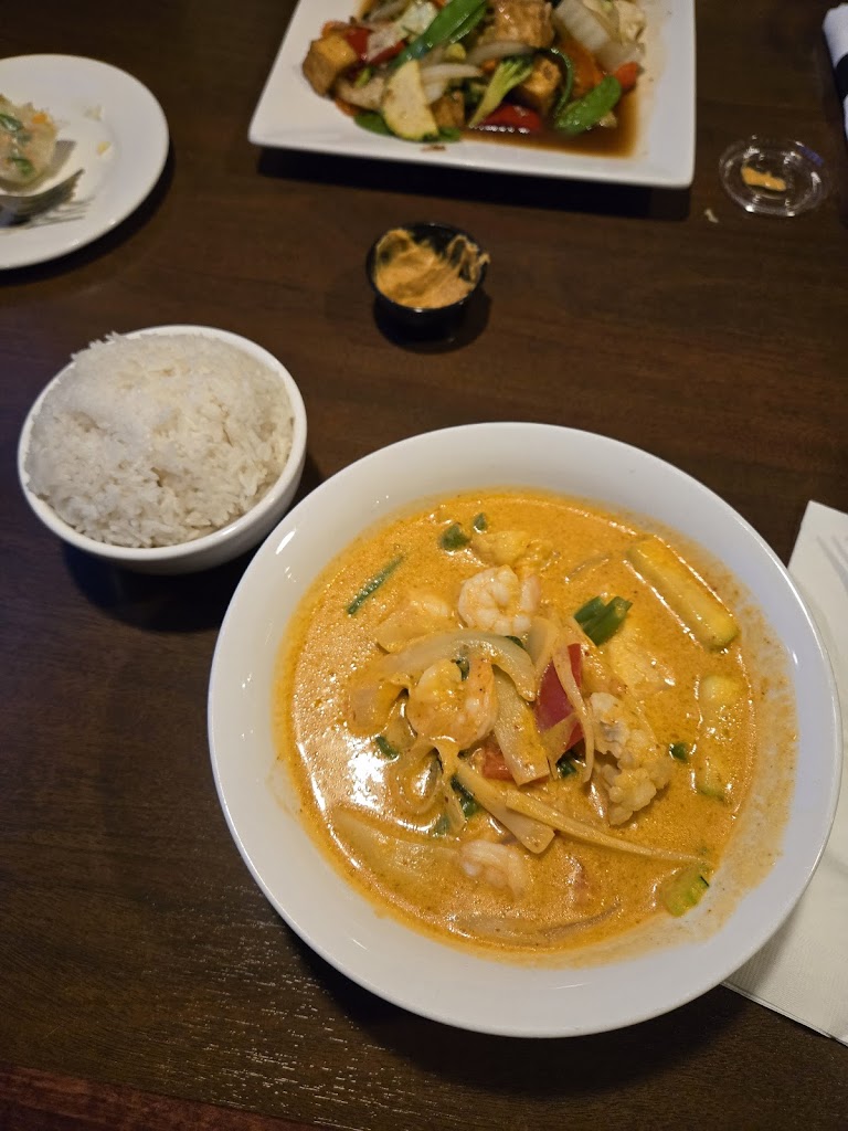 We had Spring Rolls, Curry, and Pad Thai. All were delightful.