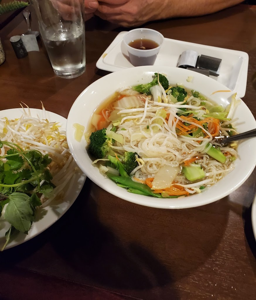 I am so grateful to be close to such a fantastic place with so many gluten free options. My go to: the Vegetarian Pho. It's both refreshing and comforting with the savory vegetable broth and perfectly bright vegetables. I add basil and cilantro from the accompanying additions for fragrance. I recommend just a few drops of the house chili oil-- it's not for the faint of heart!