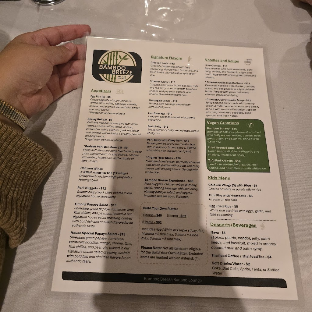 Our mission at Bamboo Breeze Bar and Lounge is to create an unforgettable experience that immerses every guest in the richness of Hmong culture. Through authentic cuisine, handcrafted drinks, and a warm, welcoming atmosphere, we celebrate tradition, community, and hospitality, making each visit truly memorable.