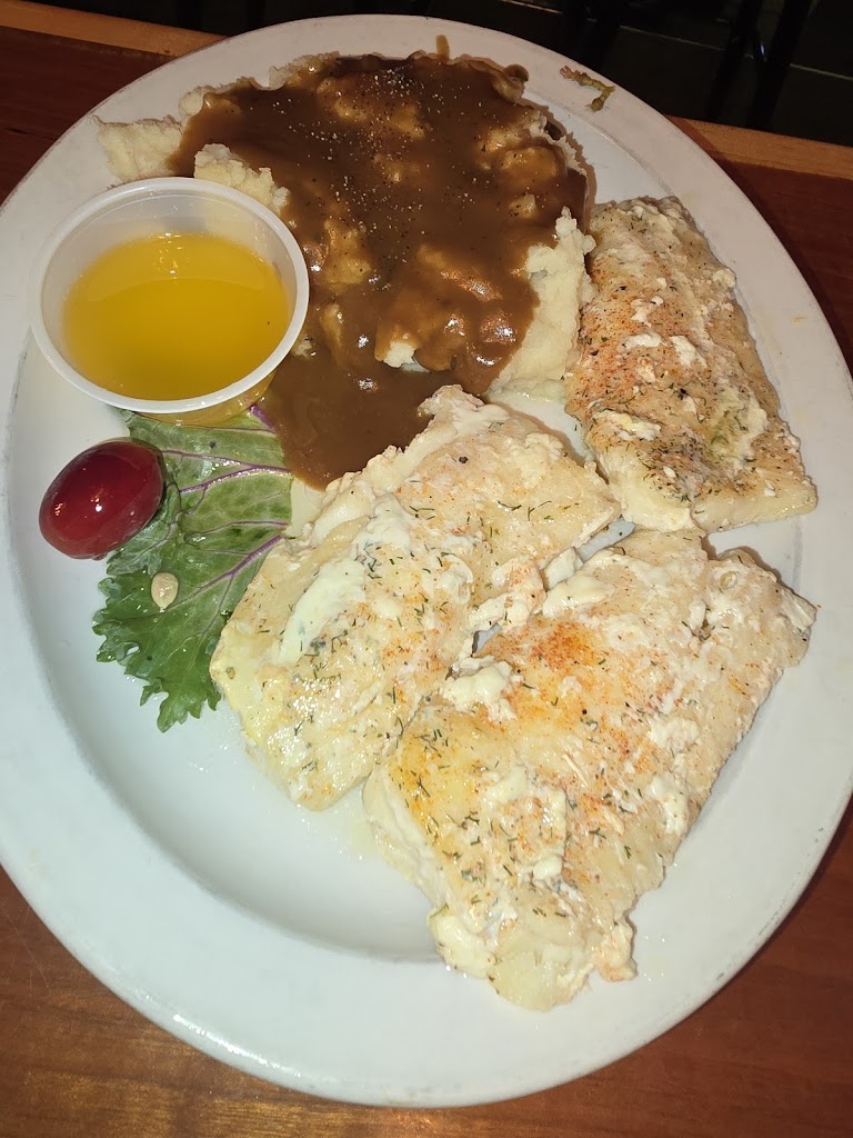 Waitress took our order for drinks, and being a Friday, gave us a bit to look at menu, yet it’s Friday night fish, so that’s what I ordered. Fresh salad bar, great cod fish, not overly breaded so you can taste fish. Ordered parmesean potato, and they were good too!! I gave it a 5 rating! Good service, came back often asked if we were good, needed anything, and attentive.