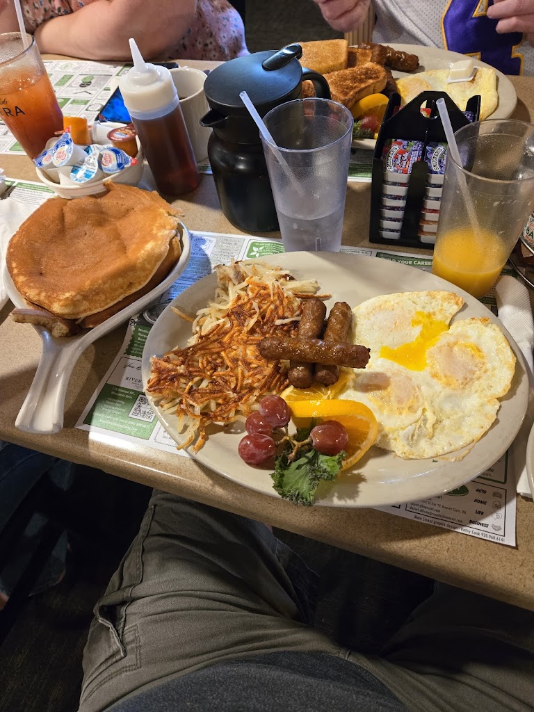 Stopped in for a late brunch. Seated right away. He had the buffet and a side of pancakes. I had bacon, egg, and hash browns with cheese and onions. They were the “star” of the meal! Delish! Service excellent, food great!