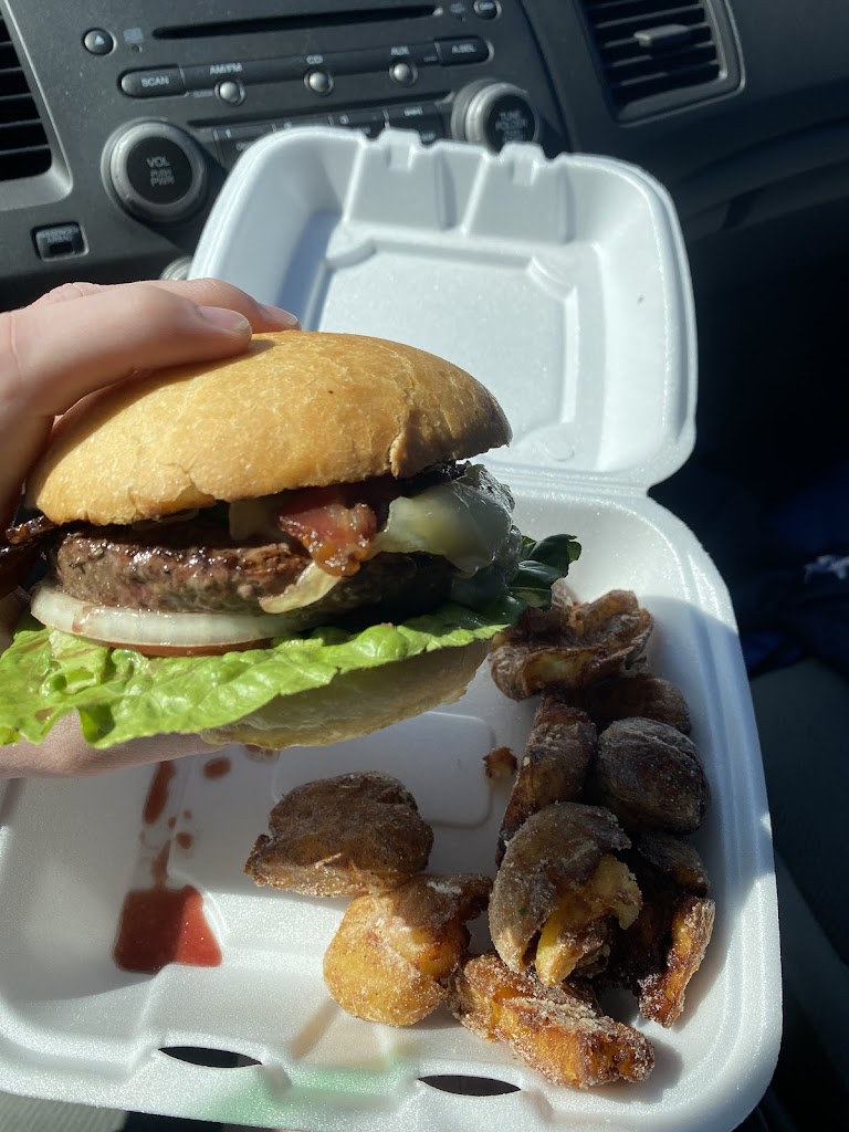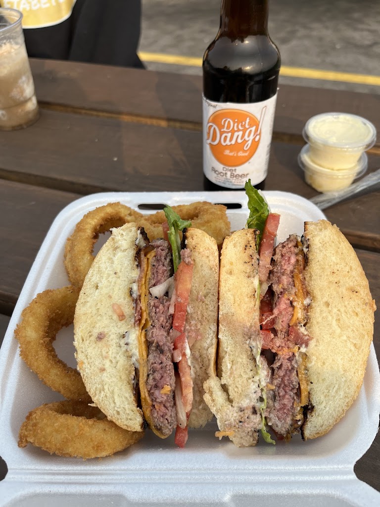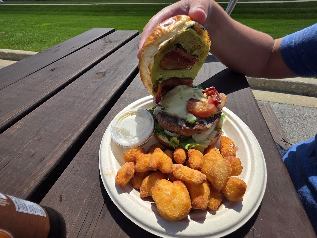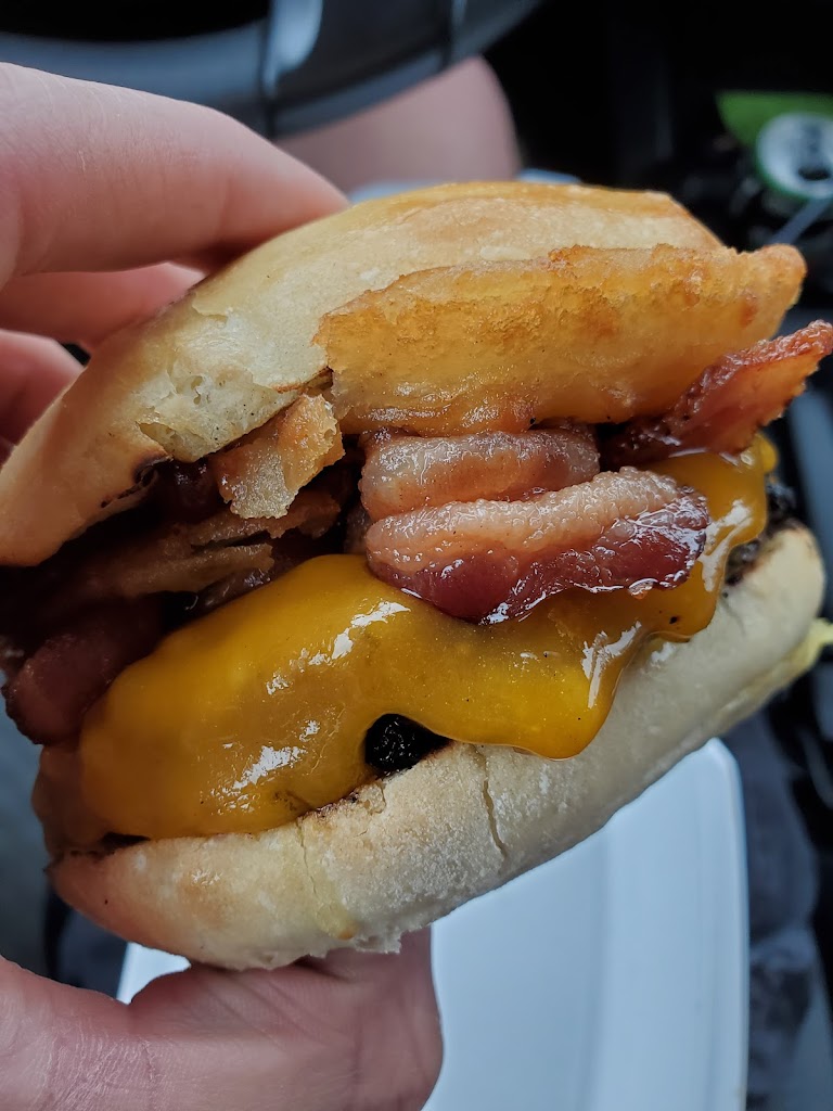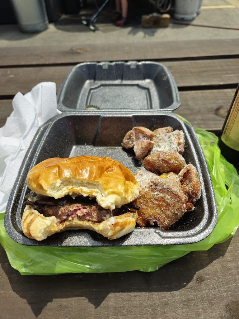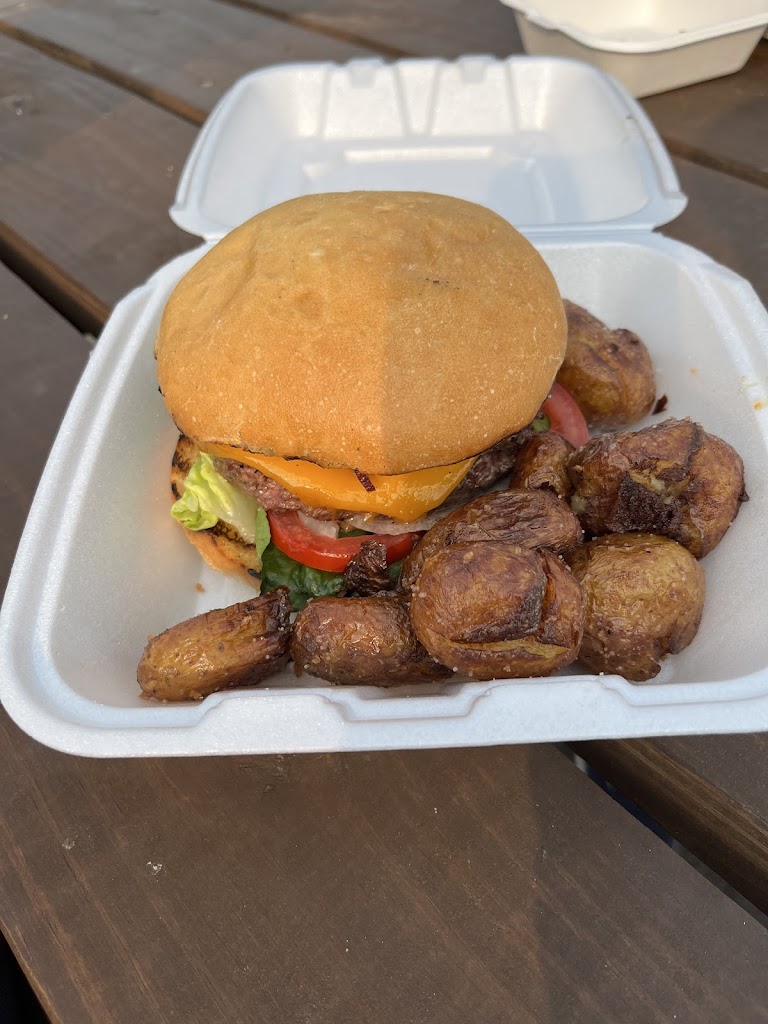 Omg! Beautiful day to sit at the picnic table and eat an excellent cheeseburger w smashed taters! Such friendly guys and fresh food. So juicy. They asked how I wanted my burger and bun done and what seasoning I’d like on the taters. Come on out and try it! I’ll b back! I could’ve had a different cheese option, too. Very accommodating. May the 4th b w you