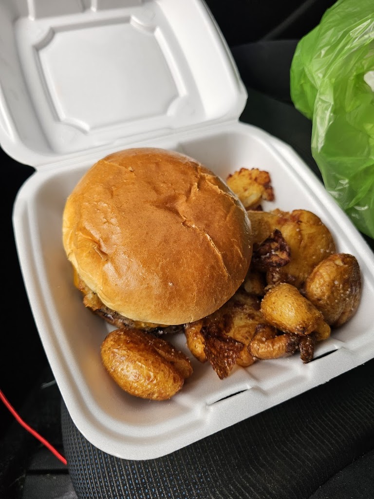 Drove up. Plenty of parking. Order taken immediately. The cheeseburger was perfect on a grilled bun. I enjoy a thick burger with a pink middle. I ordered Smashed Fried Potatoes with ranch seasoning and a side of ranch dressing. It's definitely a great al fresco dining experience.