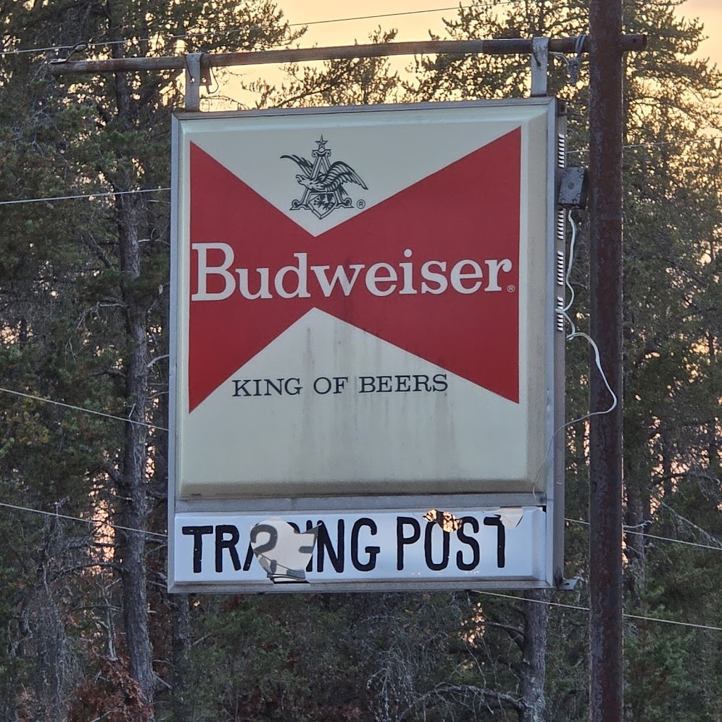 After finishing our meals, we planned to hit the road but found we had a problem with our bike, so we could not leave. We became “stranded, ” but the bartender made several phone calls to line us up with a repairman. He went far above and beyond any expectations. We will be sure to patronize the Trading Post any chance we can get in the future, and we hope you take our referral to do the same.