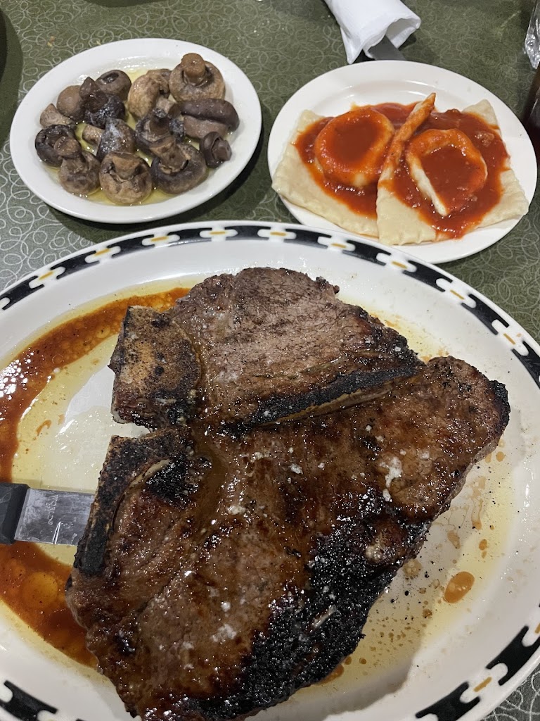 Food and service was good. Came in around 7pm on a Saturday. Waited for a table for a little bit possibly because of short staff. I had a king prime rib Saturday special for 21.95. Sides were good. One of the people in our group had the New York Strip, which was big, and the cheese ravioli for sides. Others had the other special 8 oz tenderloin with Texas toast and sides I think for a really good price.