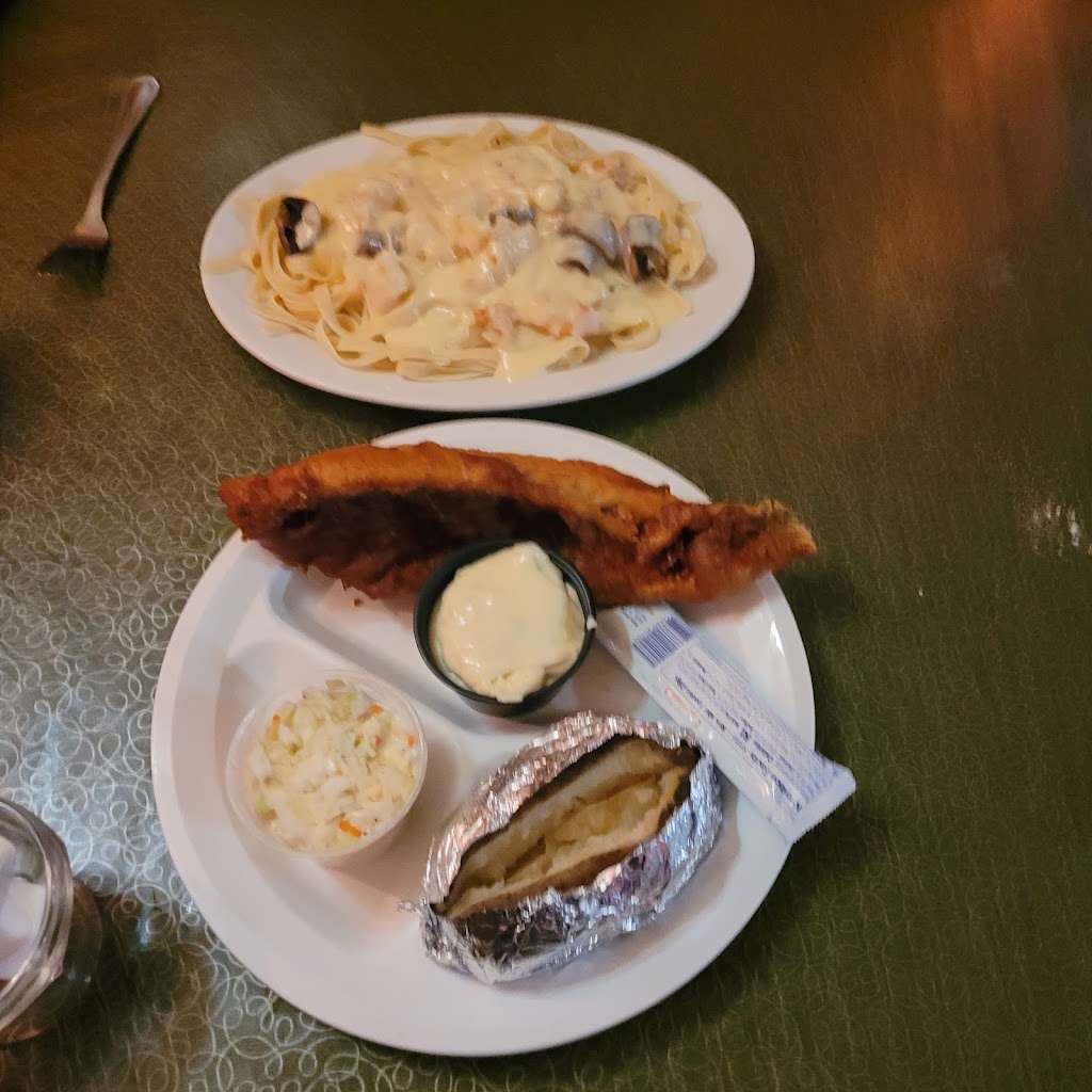 I had the Italian platter, it had spaghetti, meat ravioli, cheese ravioli, gnocchi, Italian sausage, and one of their meatballs, so much flavor in the meatball and meat ravioli all of it I date say it's probably the best Italian food I've had anywhere. My husband got beer batter shrimp with a side of spaghetti he enjoyed it immensely. I highly recommend them, the only issue was they didn't have some of the appetizers we wanted, which wasn't completely their fault.