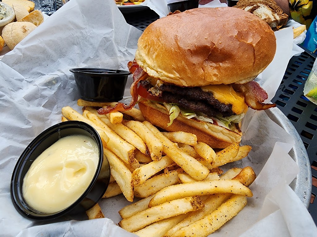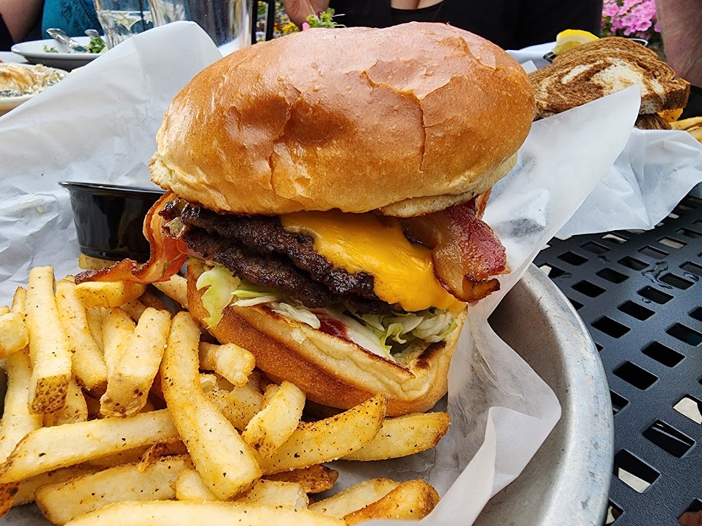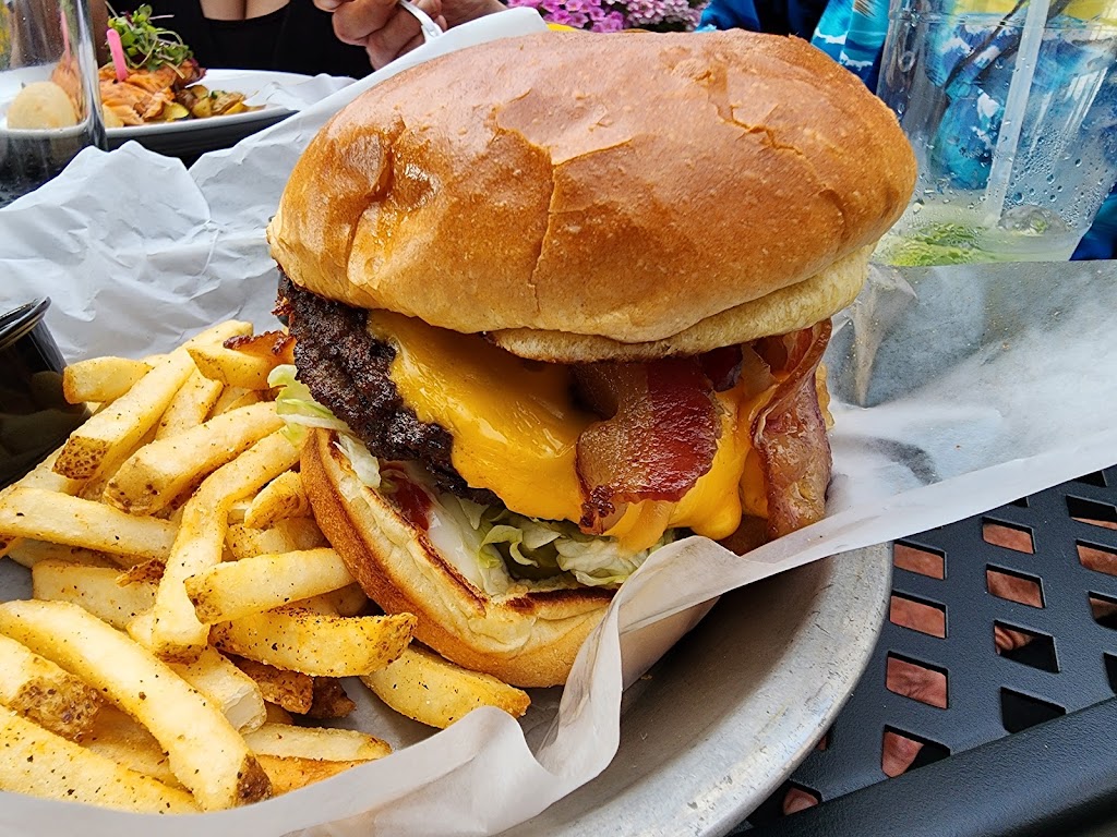 The food was great. The fish options were especially good, and everyone at our table loved the starters. The burrata was great! I got the Cheeseburger Deluxe, and it was okay. The toppings were a bit too much.