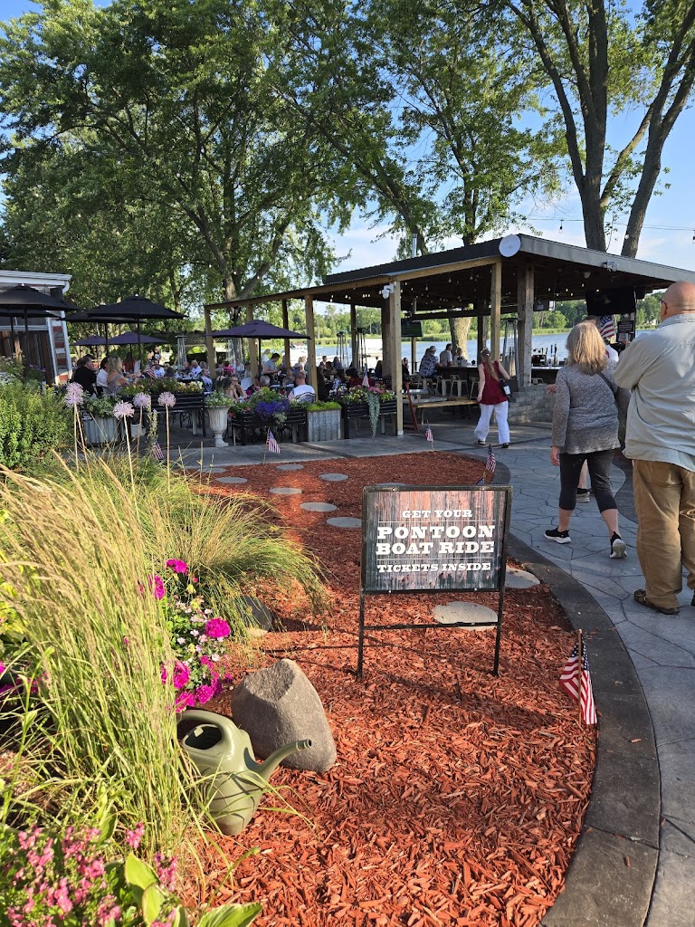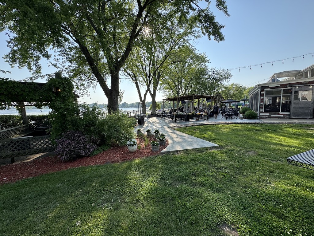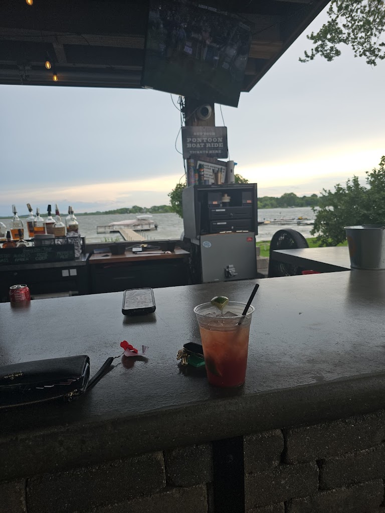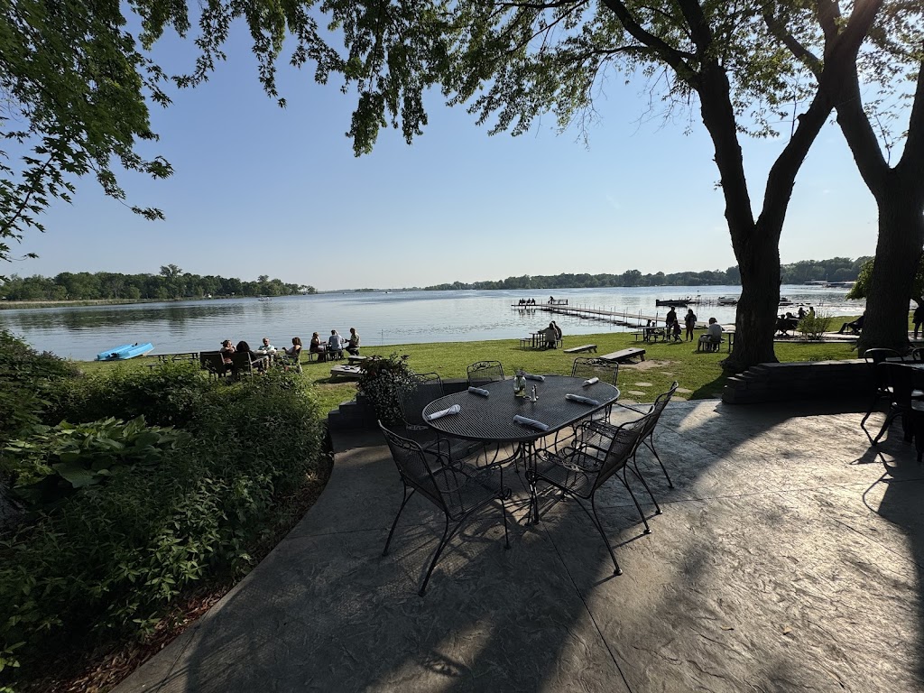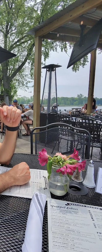 2025 update: beautiful patio and outdoor area on the lake with a dock. Full drink and food menu with lots of options between Burger, salads, steaks, fish tacos, and more. Food is good, ambiance is great, come here if you want to enjoy a view and aren't rushed (it's normally pretty busy and a bit in the slow side).