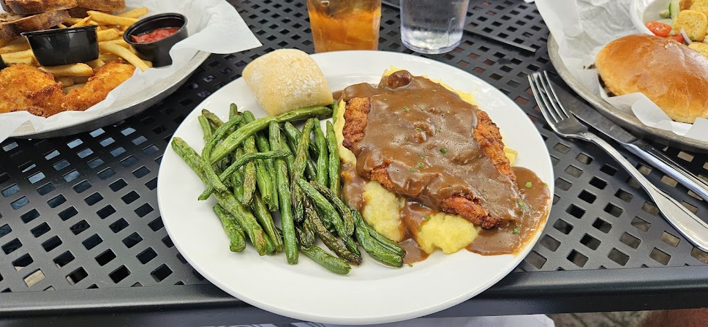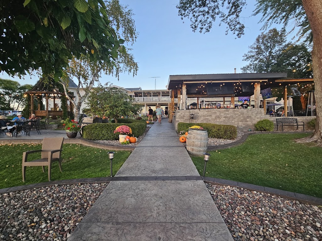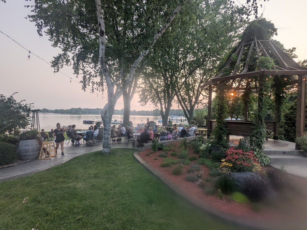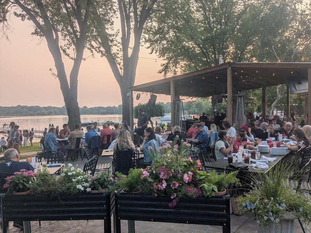 2025 update: beautiful patio and outdoor area on the lake with a dock. Full drink and food menu with lots of options between Burger, salads, steaks, fish tacos, and more. Food is good, ambiance is great, come here if you want to enjoy a view and aren't rushed (it's normally pretty busy and a bit in the slow side).