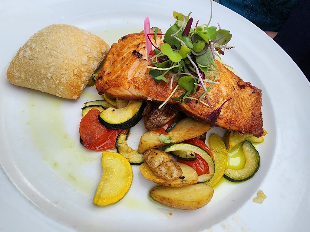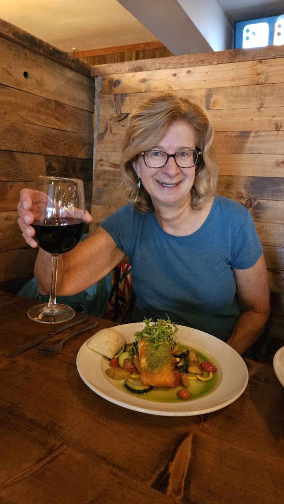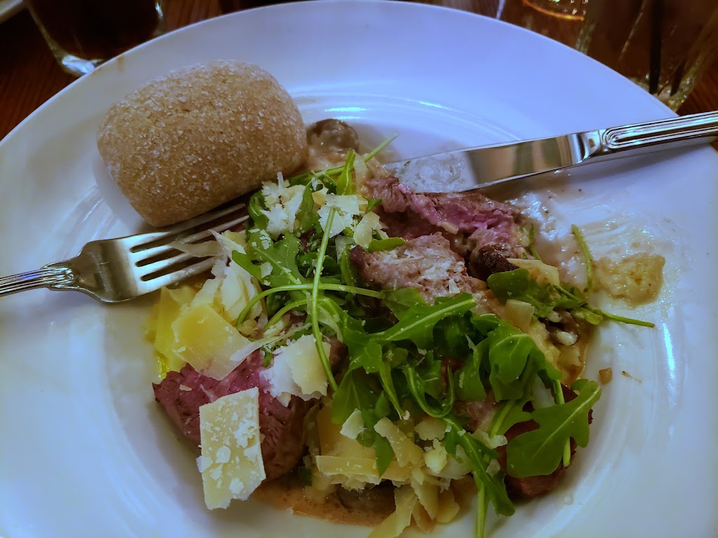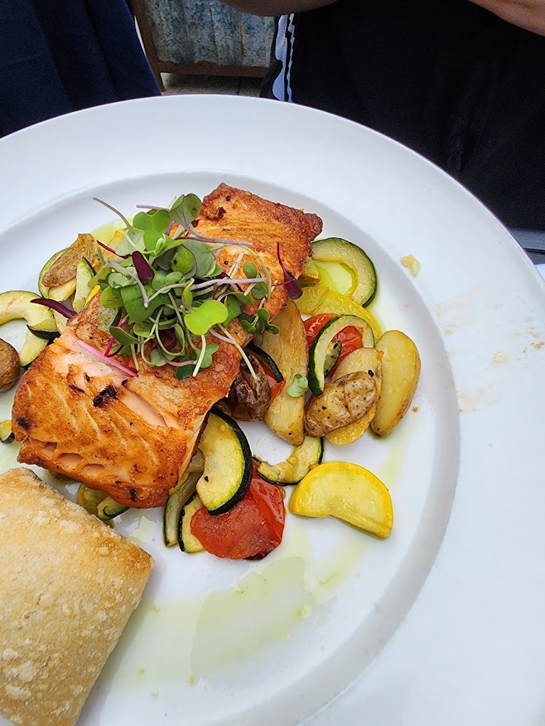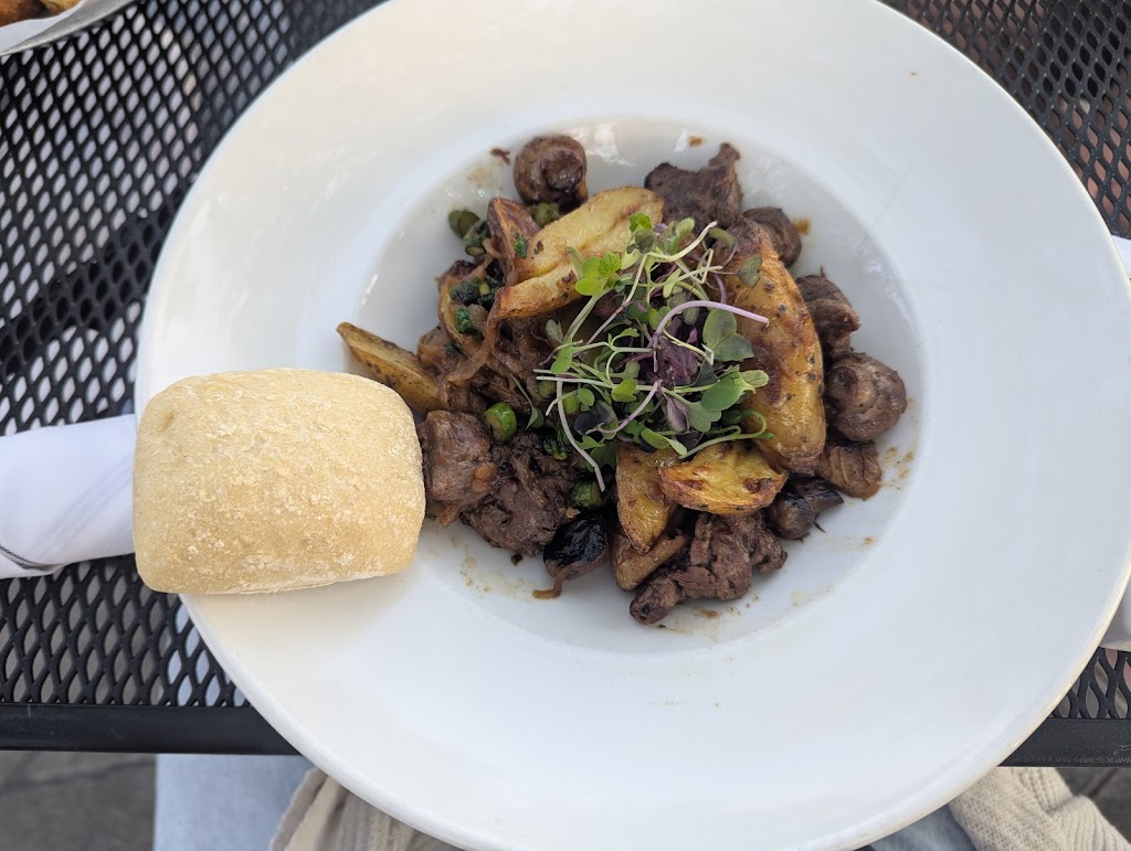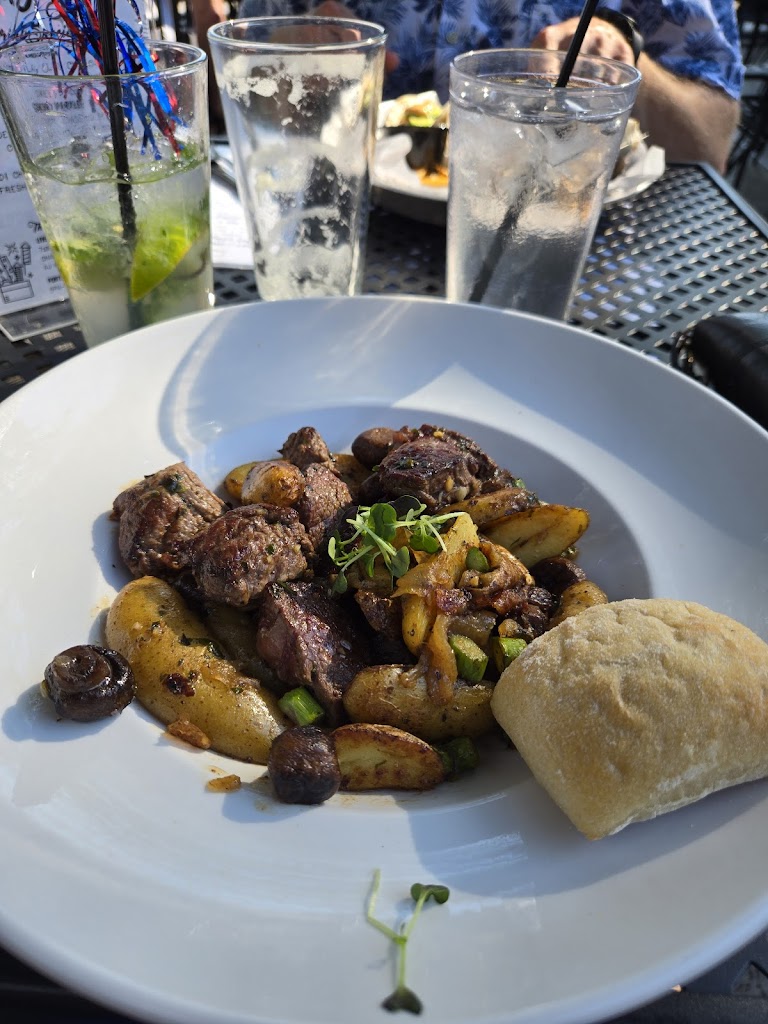 Had a great meal with a friend! Beautiful setting and fabulous menu! We each had the bartenders choice Bloody Mary infused with roasted veggies and all the toppings. We shared a Salmon Power Salad with Spicy honey vinaigrette- so darn good. Then shared the Tenderloin Tips- Garlic Char Crusted Beef Tips, Caramelized Onions, Fingerling Potatoes, Mushrooms, Asparagus, Garlic Herb Butter, Shaved Parmesan, Microgreens.