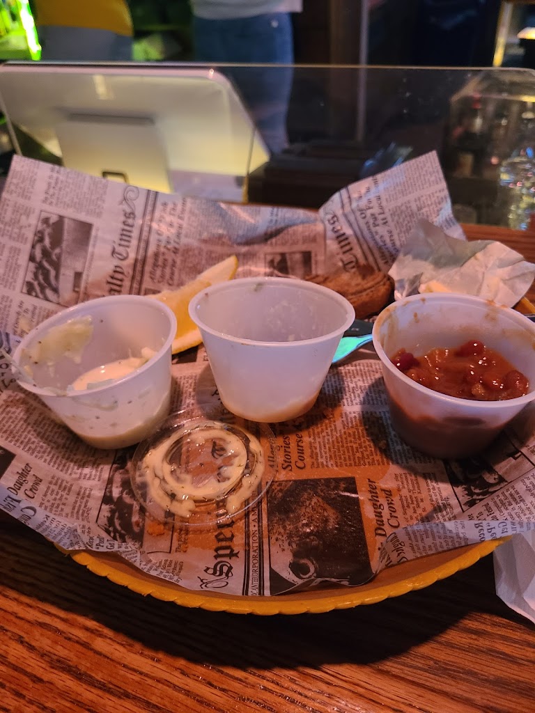 The flies inside were terrible. Fish sandwich was very greasy, and more breading than fish. Staff were great though!