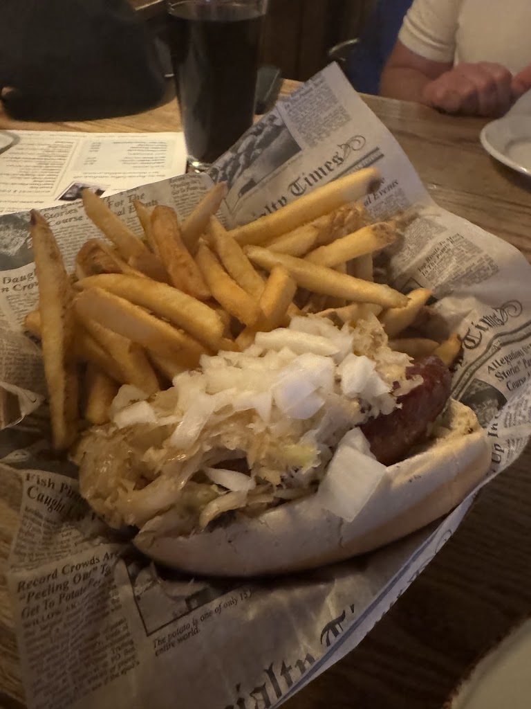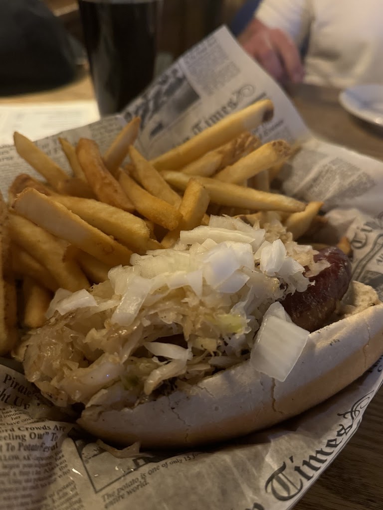 We ordered the white fish cakes and bratwurst, both of which were delicious! I also tried the local apple cider, a fantastic drink. They have a large selection of beers on tap and cocktails as well. 🍻🍸