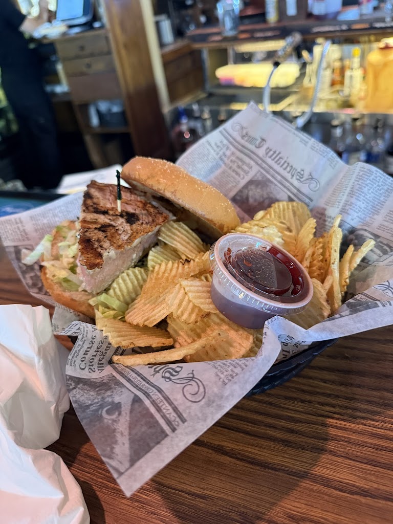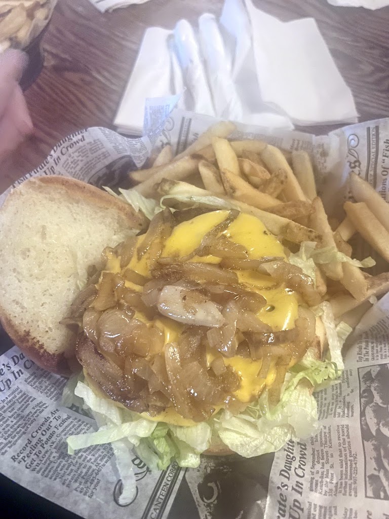 The cook saves the day - Ordered the Burger Brat, and it hit the spot. If it wasn't for the great sandwich and prompt delivery of it, I'd be leaving a poor review. I was sitting at the bar, and my waitress had zero follow-up service. Had to eat 3/4 of my meal with an empty glass. Finally, I was able to flag down the owner or manager to get a refill just before I finished eating.