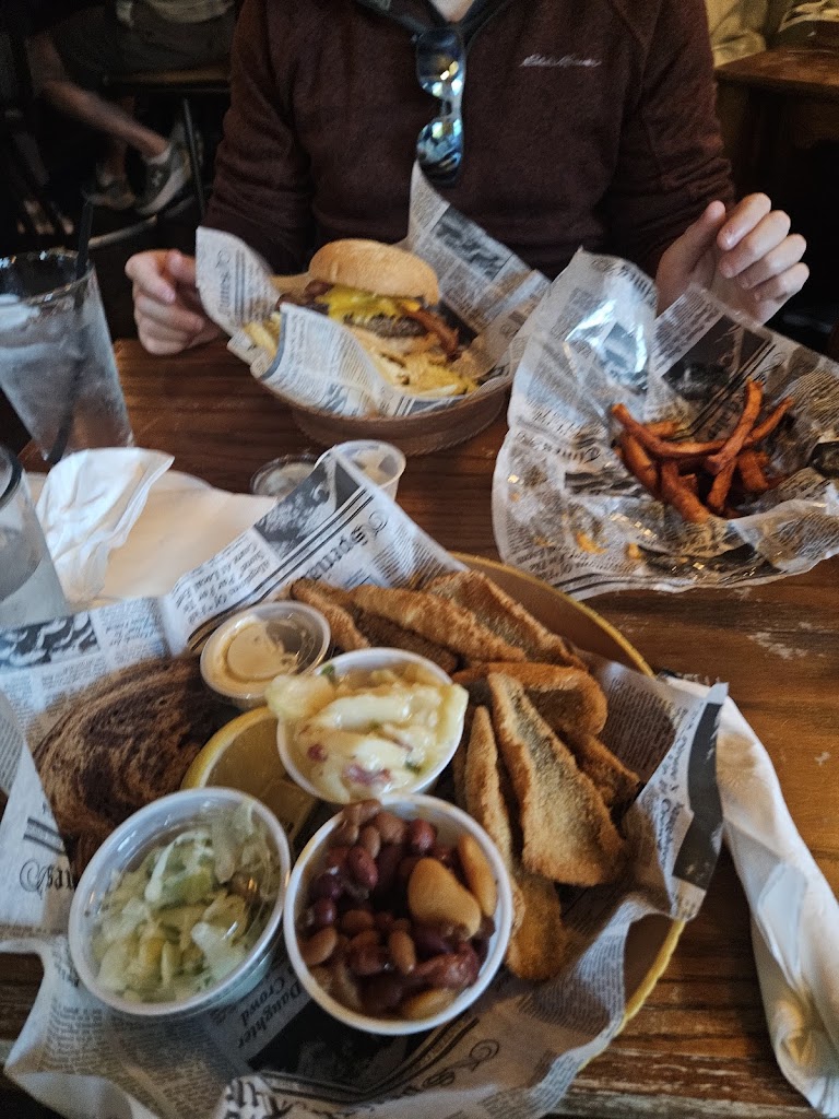 Very crowded on a Tuesday night but all 3 of us LOVED our food which was the Reuben sandwich, chili cheeseburger (on a gluten free bun), and the classic hamburger. I asked for my hamburger to be WELL DONE and they delivered perfectly. Some places will still leave pink when asked to be well done but they did not. It was perfect. 👍🏼