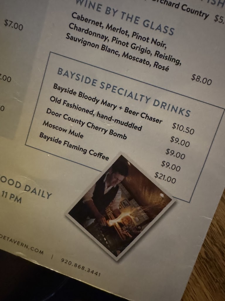This is always one of my favorite places to eat and drink at in Door County. I love the atmosphere, service, and the food and beverages never disappoint!