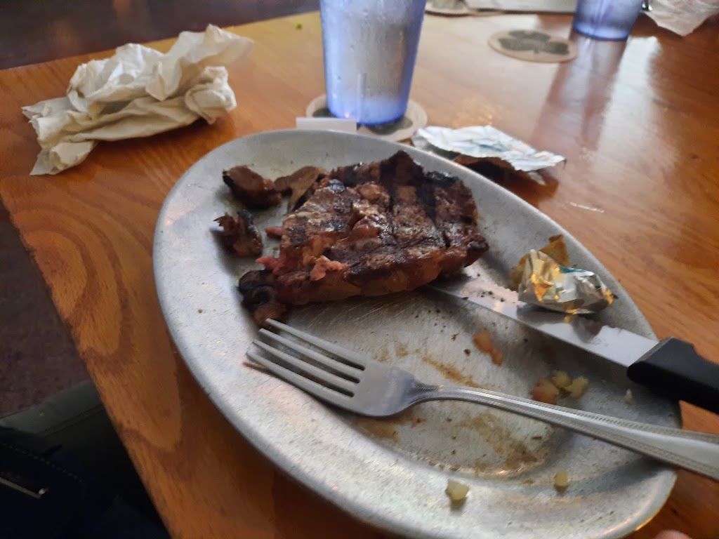 Tuesday night steak night. One of the best steaks I've ever had. Both tasty and tender. Meal was under $15.00 per person.