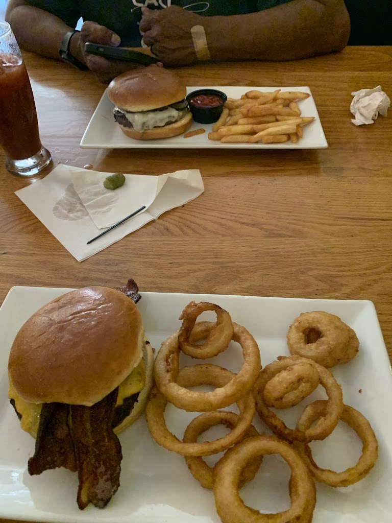 Hubby had a mushroom burger. I had a bacon cheeseburger. They don’t come with a lot of frills and extras. They also do not come with anything so fries, onion rings and etc. are an extra cost, although very reasonable.