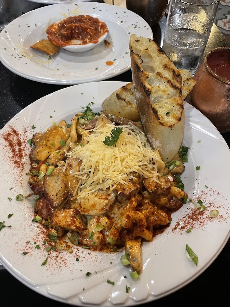 Great place to eat and hang out! The blueberry mule was fantastic! I also recommend the Mac with brisket, super yummy! Loved the service and atmosphere too!