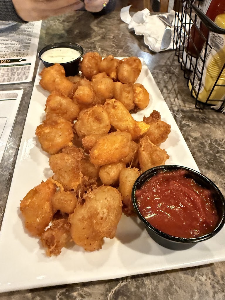 Charming “supper club”-type atmosphere with delicious bites! The cheese curds were some of the best I’ve tried. Outside, there’s a beautiful patio by a creek and a lovely garden so the flowers. Aside from the food and ambiance, I’d say the best part of our experience was the service from Shirley. Even though she was clearly stretched very thin servicing multiple tables as a one-woman team, she was incredibly cheerful and attentive. We came towards closing time and she never rushed us. I appreciated her giving me good tips on the food and recommending the chowder, which was absolutely delicious.