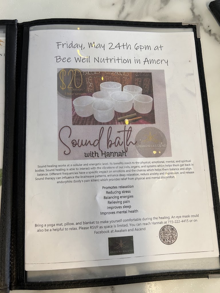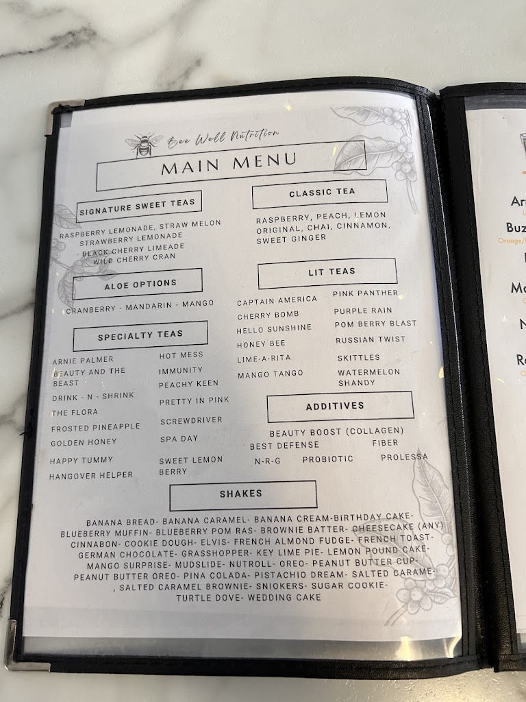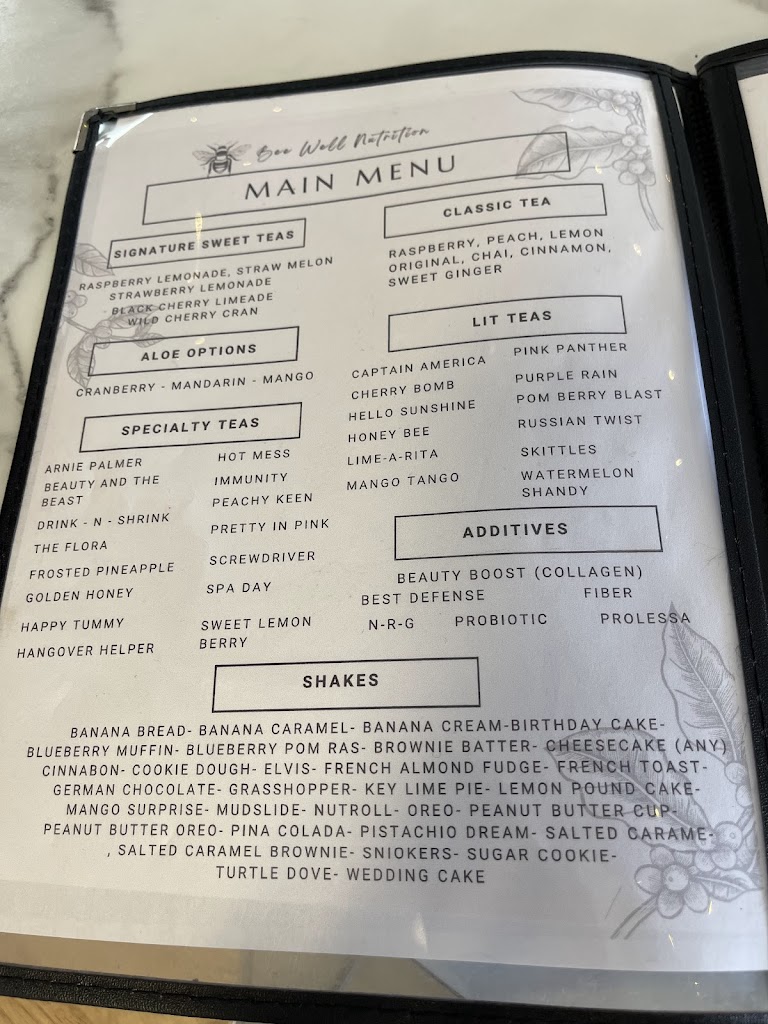 Visited Bee Well Nutrition for the first time this week, what a find! Becky, the owner greeted us upon entry and it set a delightful tone. They make up a variety of teas and shakes. I had a Passion fruit/mango blend and it was delicious. The shop is clean and well presented. Highly recommended.