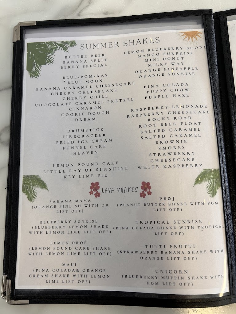 Teas and shakes are superb- great variety and pricing is good!! And atmosphere is wonderful!! Service top notch!!!!