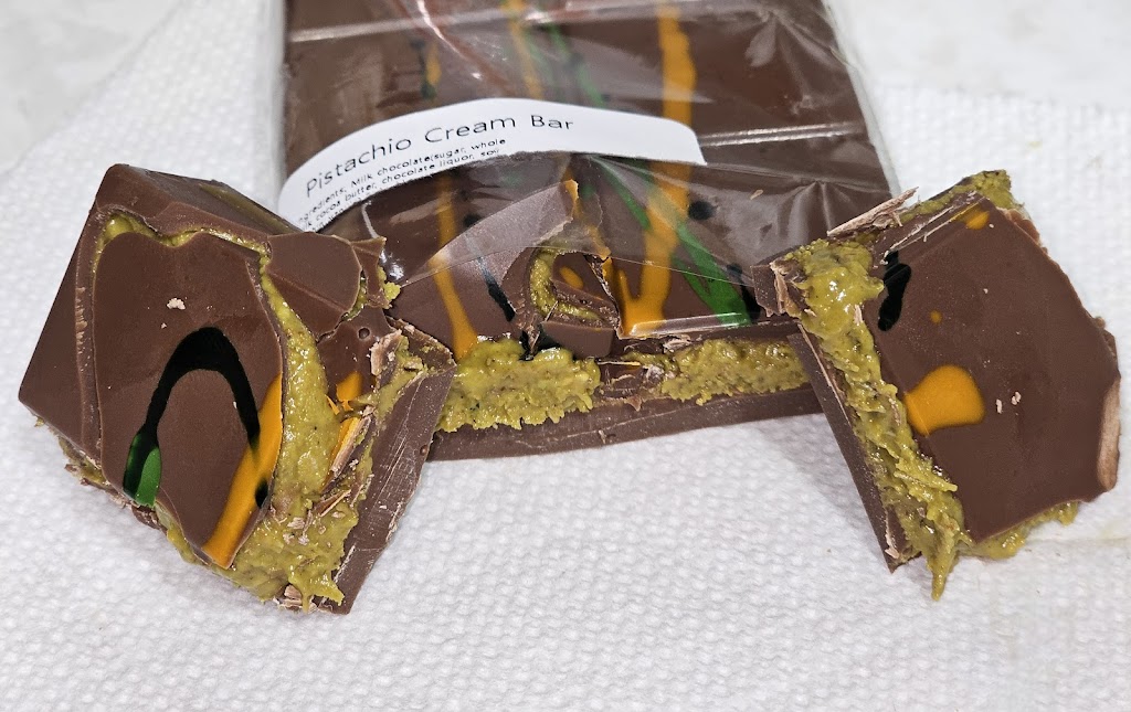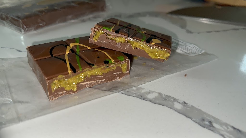 Such a cute shop. All types of chocolate and goodies, the “Dubai chocolate” pistachio cream bar was a little deceiving, they advertised a picture of the bar, but the three bars that I bought did not have no where near the amount of filling in their photo. The chocolate is delicious but definitely needs more filling, as the bottom layer of the chocolate is very thick. I would have loved the amount of knafeh like their photo but still a very delicious chocolate bar!