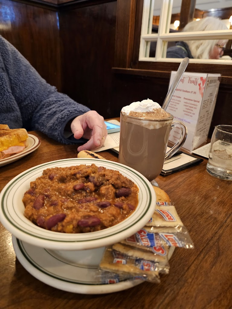 Grown Up Grilled Cheese, so very good! Tomato Bisque- I'm not a fan of blue cheese, but the blend was perfect with the garlic & tomato! Raspberry Lemonade for me and a Macchiato with complimentary cookie for him. Add a Turtle Sundae- yes, please! Everything was very yummy! On the way out, we picked up some Sour Cherries & some Cinnamon Bears. Glad we stopped in!