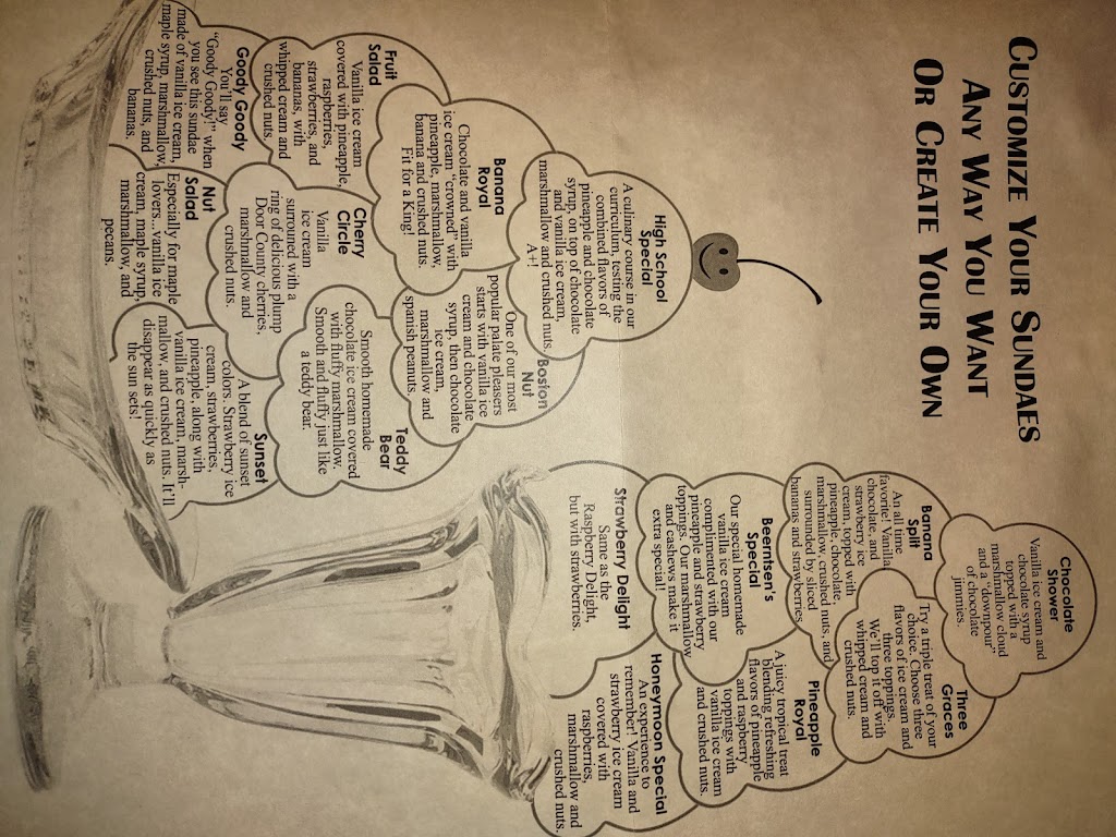 They have 32 different sundae options for you to choose from. They also have a small lunch menu.