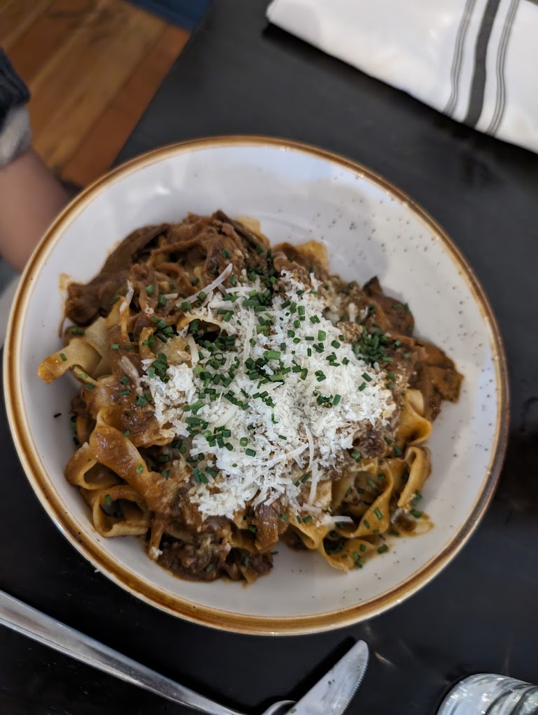 Filled up on the delicious brussel sprouts and roasted cauliflower so I could hardly eat the braised ribs. Just had it for lunch and it was so good. The service was top notch and the environment was warm and inviting. Plenty of parking, too.