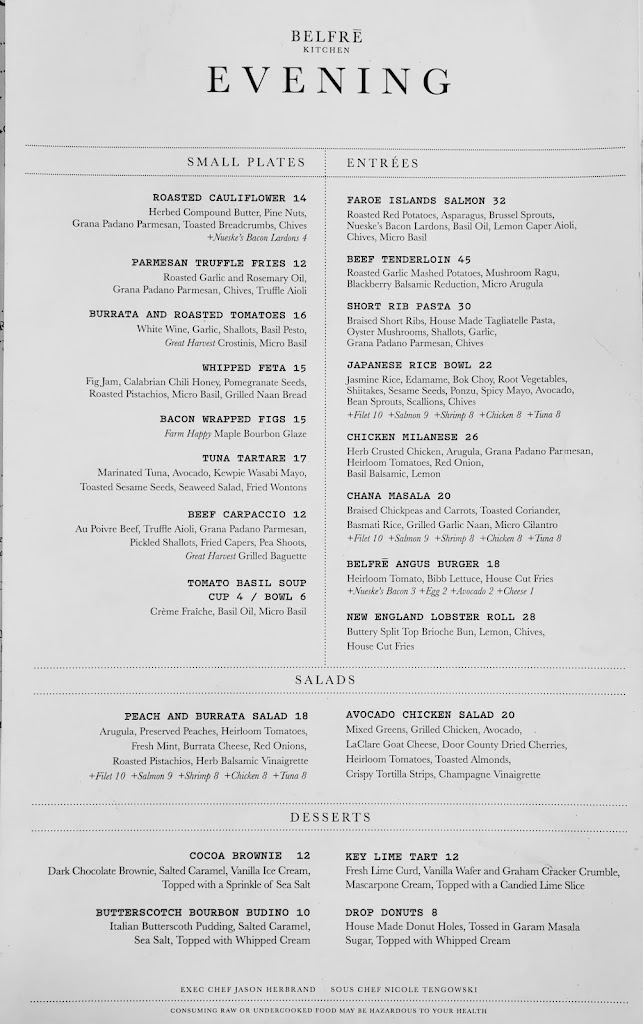 I have been to far fancier and more expensive restaurants that didn’t serve up half the taste, quality, or experience. This is why Belfre is where we’re always go back to.