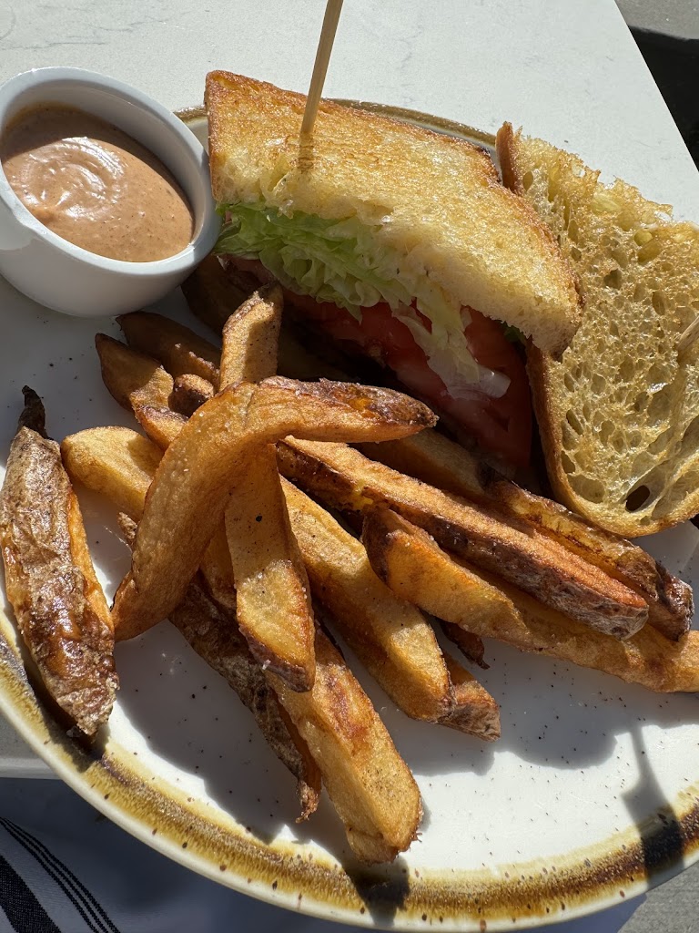 I have been here so many times and always get the whipped feta dip because it’s amazing! Them not having it until 2pm on Saturday was a blessing in disguise as I tried the blt and peach burrata salad which were both excellent as well. Staff is always kind and the restaurant itself is adorable. I highly recommend!
