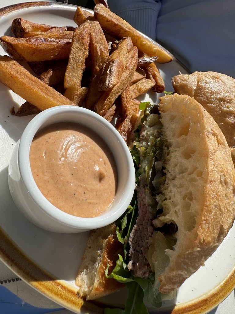 OH MY! First Time here and I am at a loss for words! Place, Service, Food perfect in every which way! I am still eating my steak sandwich and fries so darn tasty best steak sandwich I have ever had. The flavors are delightful. I cant imagine what their other menu items are like. I am sure out of this world!