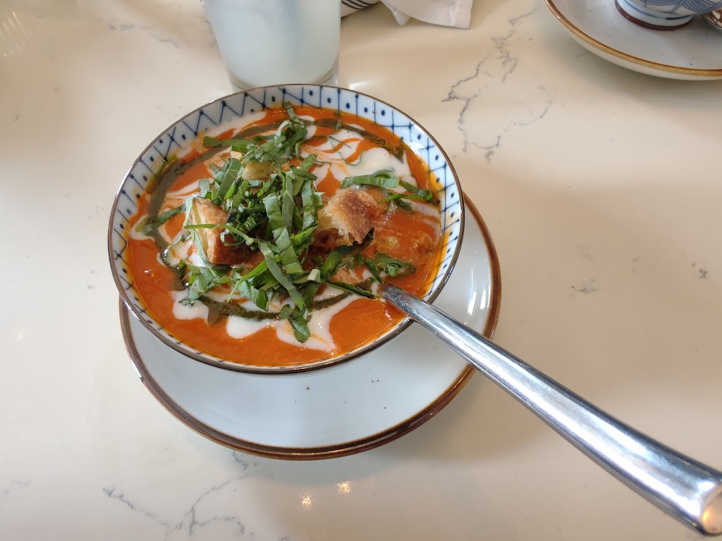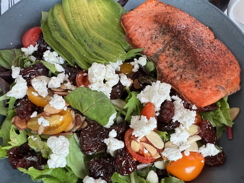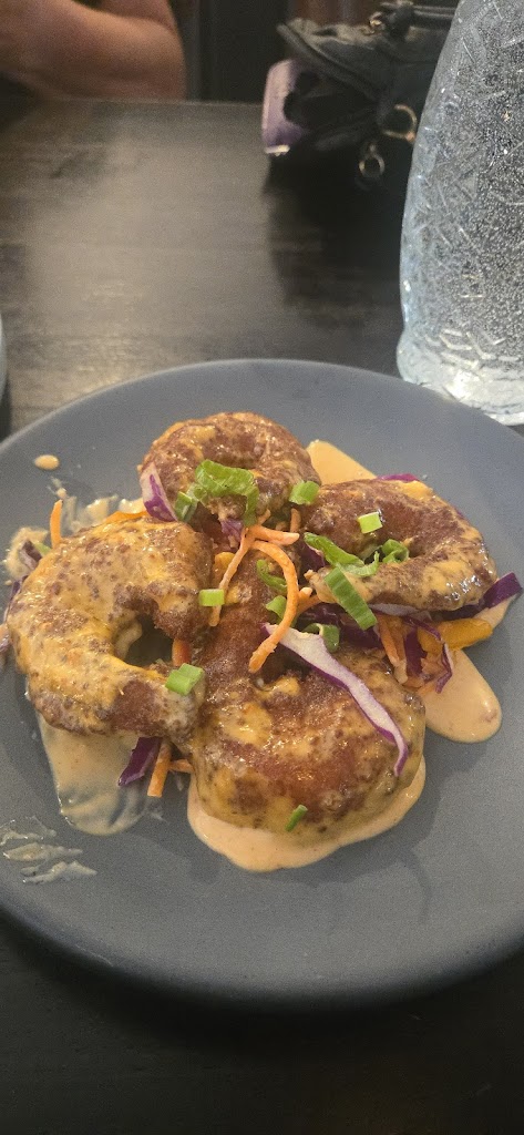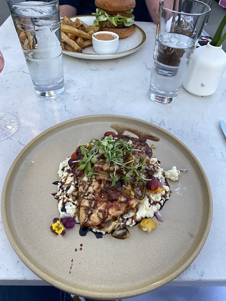 We had a lovely evening, sitting outside at this quaint restaurant with ample outdoor seating. Inside, you’ll find a warm inviting lively dining room. For our meals, we had the bruschetta chicken. Delicious. My guest ate every bite. I had the rice bowl. Full of tasty, morsels of purple, radishes, edamame, shiitake mushrooms, bok choy and avocado topped with crunchy wonton strips, sesame seeds, and spicy mayo. I added shrimp as a protein. My only disappointment was that there were only three small pieces of shrimp. For the price, I would’ve liked five.