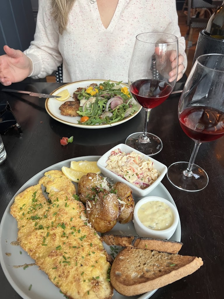 Charming and tasty restaurant in the heart of Delafield. We had a 6pm reservation on a Friday night and were promptly seated indoors. We could have waited 20 minutes to sit outside but declined. Service was very fast and friendly. Came and took our drink orders very quickly. The Sommelier Selection wine was very good and served in a chilled stone bucket. We started and really enjoyed the Bruschetta with Burrata. We ordered the pan fried walleye and Milanese chicken. Both were amazing! 5 stars all the way around for ambiance, service, and taste.
