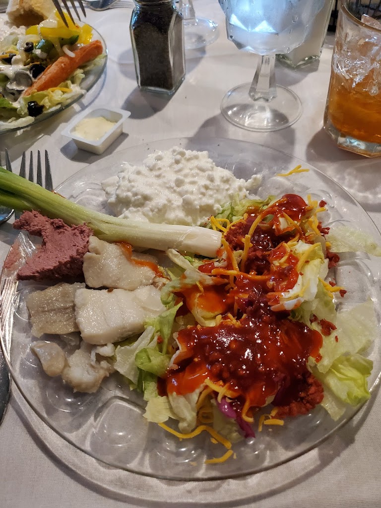 A nice Wisconsin Supper Club vibe. Offering some of the standard supper club items, steak, prime rib, Friday fish fry, some seafood and chicken options. Meal comes with soup and a visit to the salad bar. If, for some reason there ia a wait for your table, they have a very nice bar to enjoy. They offer for desert, enormous sized, adult ice cream drinks as well as cheesecake. A little disappointing the menu isn't the same in house as the one you see when you google them. But not totally surprised, most places have downsized their offerings due to the pandemic.