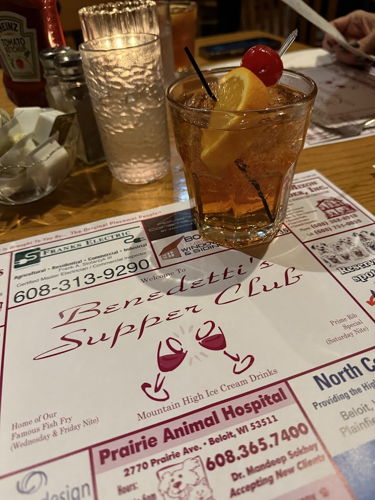 Traditional Wisconsin Supper club with good brandy old fashionds, prime rib on Saturdays, soup and salad bar, and "mile high" ice cream drinks for dessert. We tried all of that, and it was better than expected. The place has been there for a looooong time, and you never now if it is going to have the vibe you are looking for. Sometimes these older places have a smell, but this place was clean including the bathrooms. The highlight of the meal was the chicken pozole soup, and the pink squirrel ice cream drink. The prime rib, and ribeye were not lacking anything, but the soup was unforgettable, and if you never ordered their ice cream drinks, you missed out. Overall a really memorable experience.