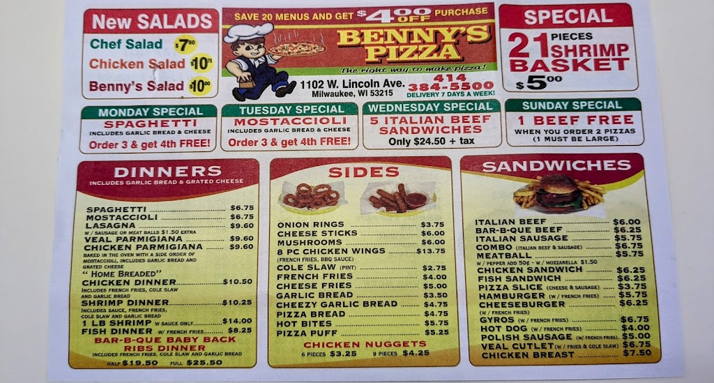 I have been ordering from Bennys for years. They have the BEST pizza and the BEST lasagna I've ever had.