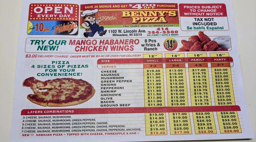Its Decent Pizza I Had. But its Not much more than that. But the people were nice but the atmosphere is dead, and everyone stared at me cause I’m a White Guy and the ONLY WHITE GUY AROUND that i see. But i wasn’t treated differently. But over All if you’re gonna be called Benny’s pizza, you should have better pizza! 3 Stars!!