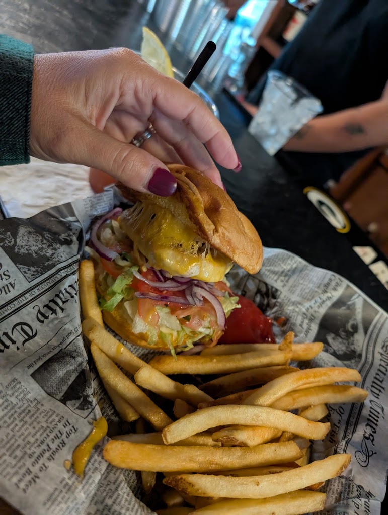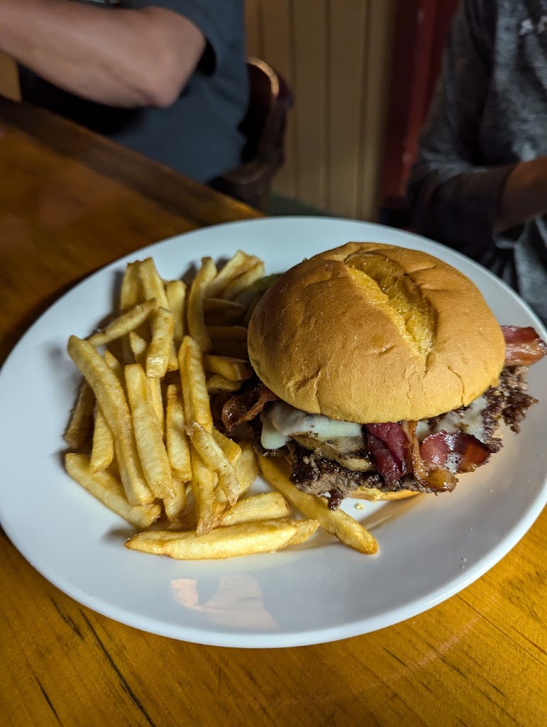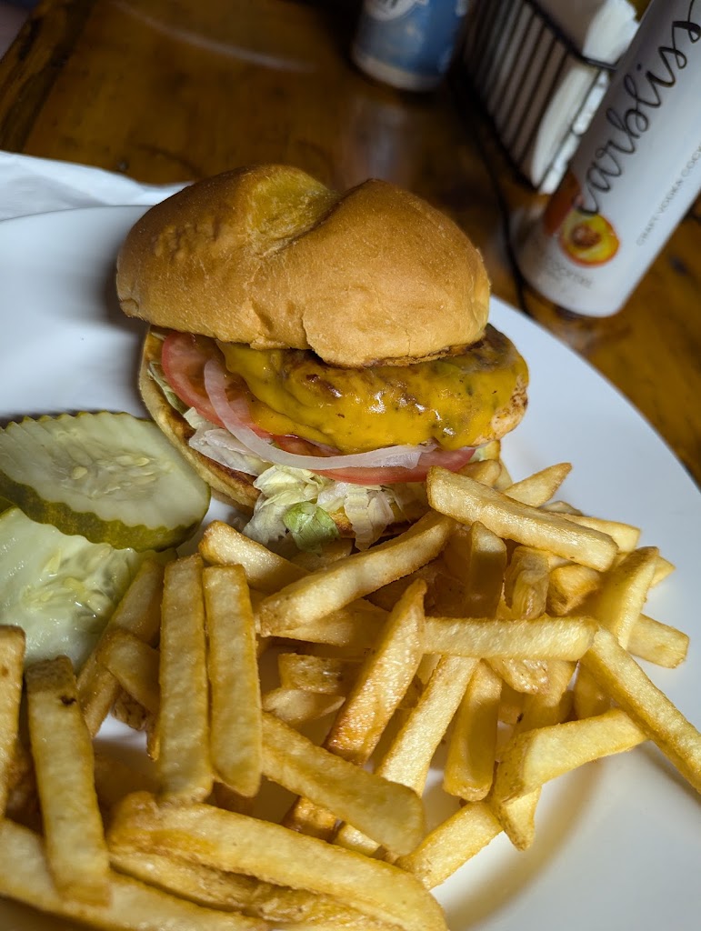 Had an amazing mushroom swiss burger with fries and fried chicken sandwich last evening - fantastic bar food and great local atmosphere!!