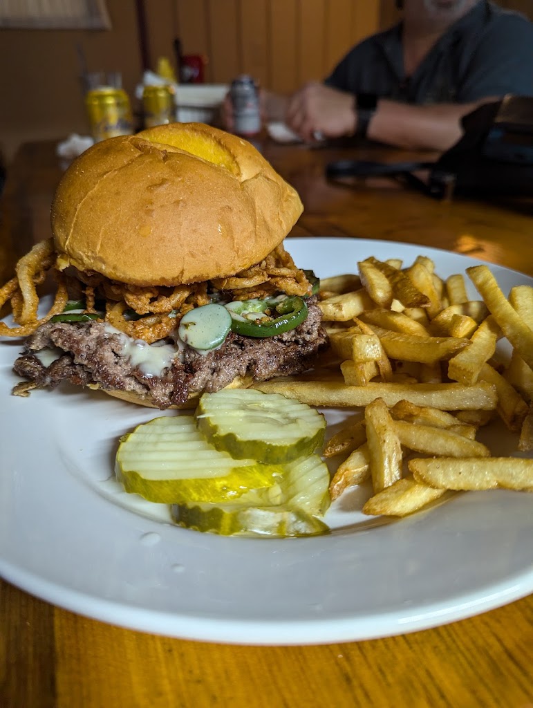 Burgers were top tier! One of the best smash burgers ive had in recent years. Apps and drinks were great too. Great service and staff. Could use some updating inside and out, definition of dont judge a book by its cover.